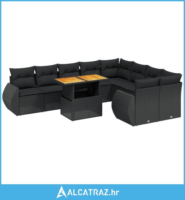 10-dijelni set vrtnih sofa s jastucima crni od poliratana - NOVO