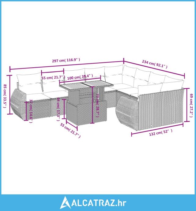 - 9 x jastuk za sjedalo s odvojivom i perivom navlakom