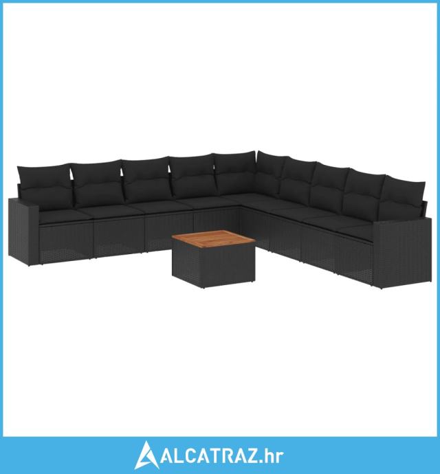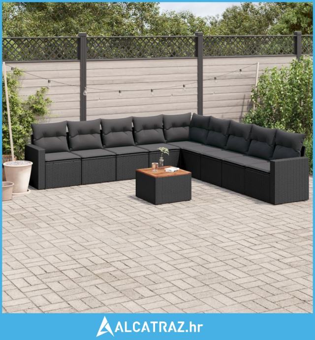 10-dijelni set vrtnih sofa s jastucima crni od poliratana - NOVO