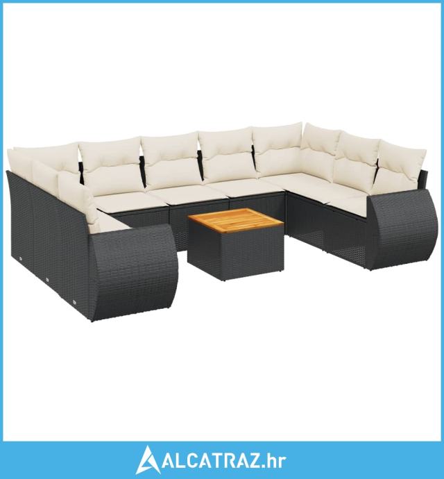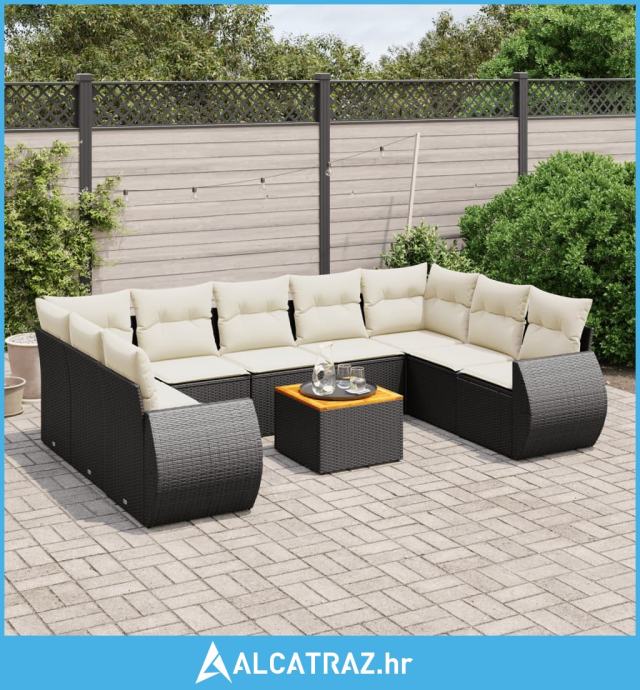 10-dijelni set vrtnih sofa s jastucima crni od poliratana - NOVO