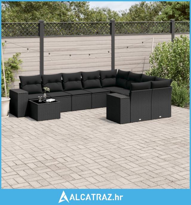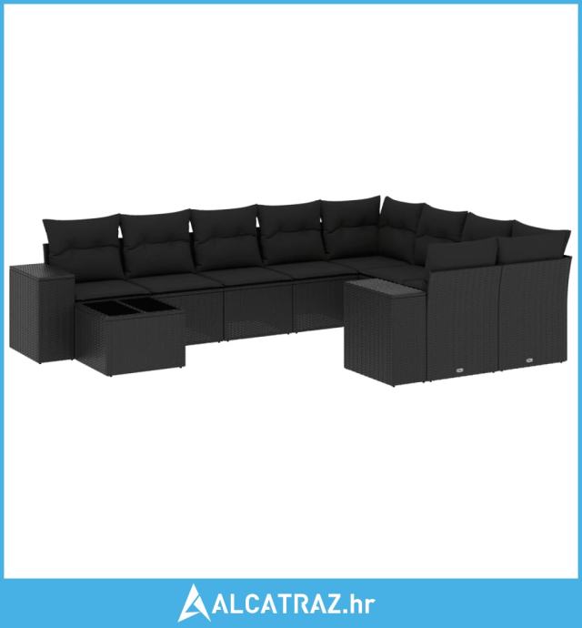 10-dijelni set vrtnih sofa s jastucima crni od poliratana - NOVO