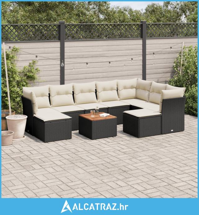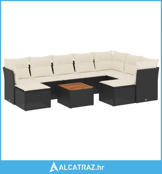 10-dijelni set vrtnih sofa s jastucima crni od poliratana - NOVO