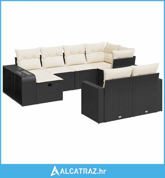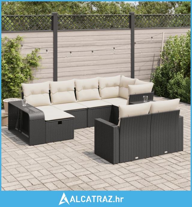 10-dijelni set vrtnih sofa s jastucima crni od poliratana - NOVO