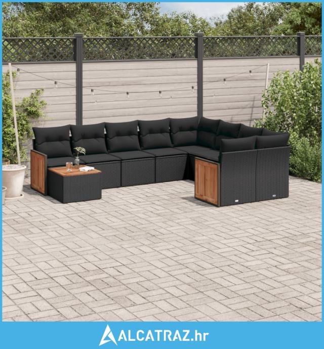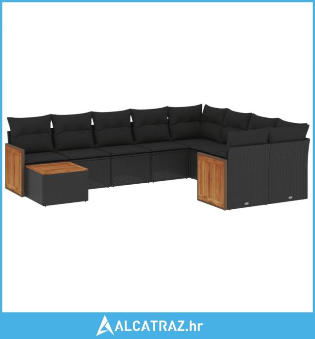 10-dijelni set vrtnih sofa s jastucima crni od poliratana - NOVO