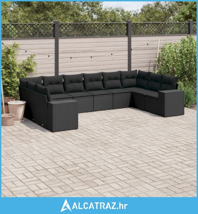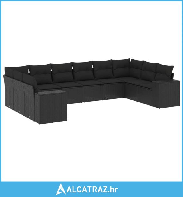 10-dijelni set vrtnih sofa s jastucima crni od poliratana - NOVO