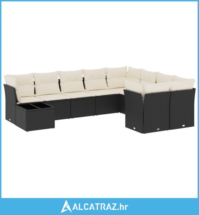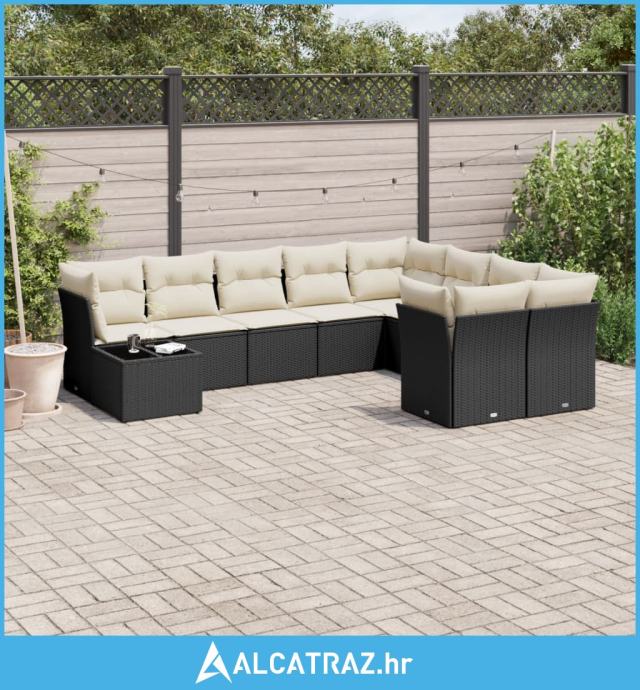 10-dijelni set vrtnih sofa s jastucima crni od poliratana - NOVO