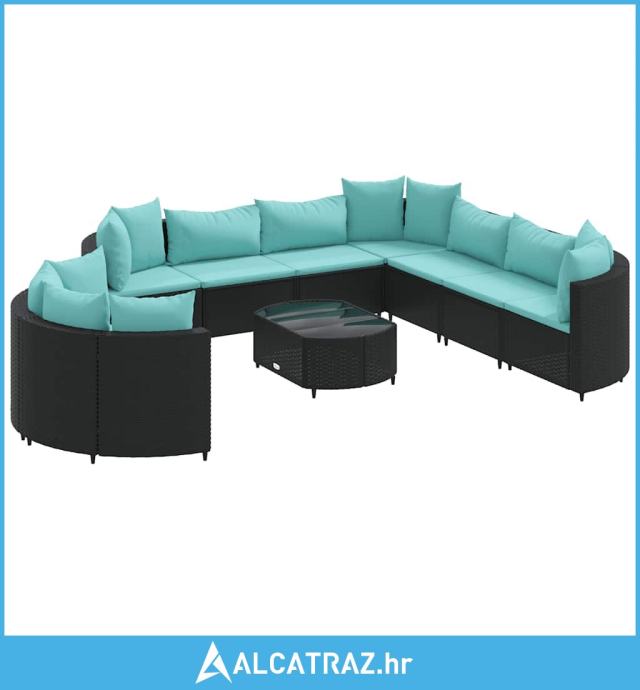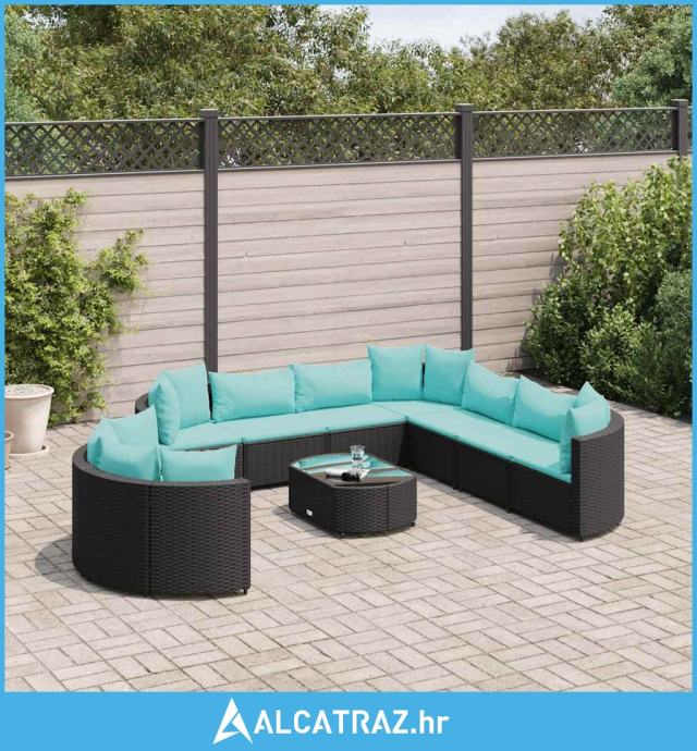 10-dijelni set vrtnih sofa s jastucima crni od poliratana - NOVO