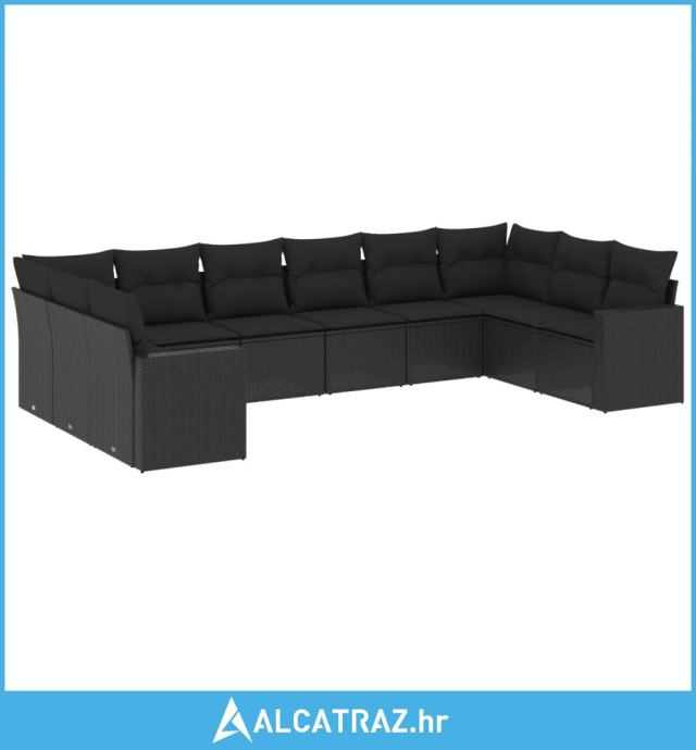10-dijelni set vrtnih sofa s jastucima crni od poliratana - NOVO