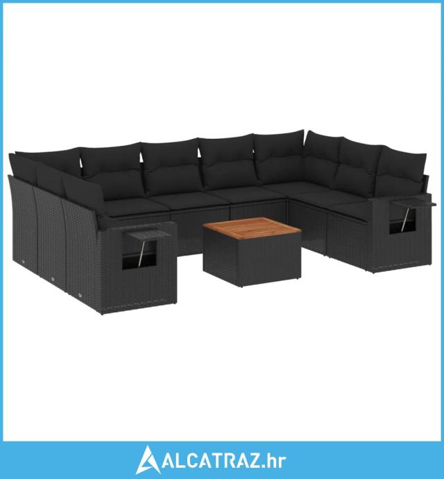 10-dijelni set vrtnih sofa s jastucima crni od poliratana - NOVO