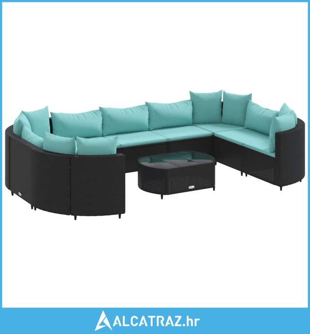10-dijelni set vrtnih sofa s jastucima crni od poliratana - NOVO