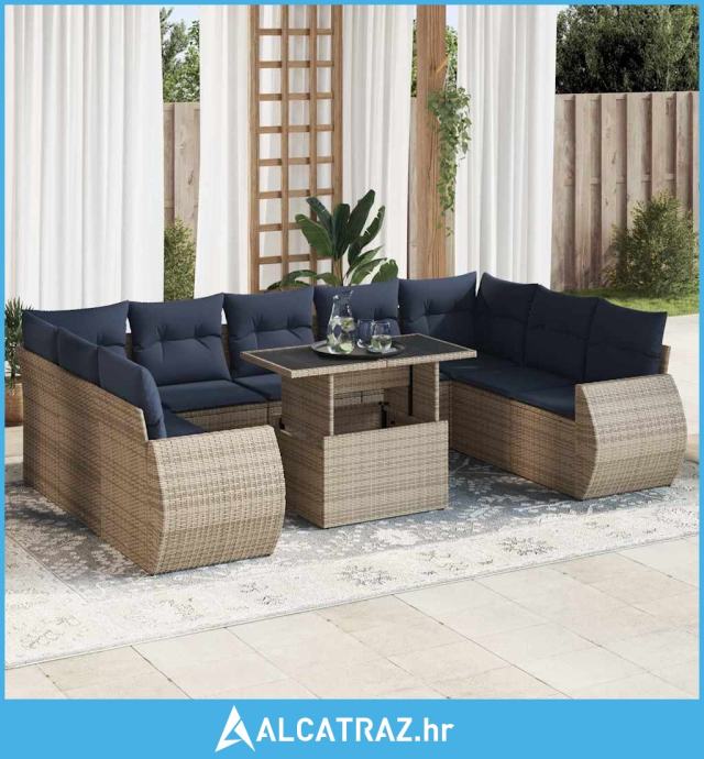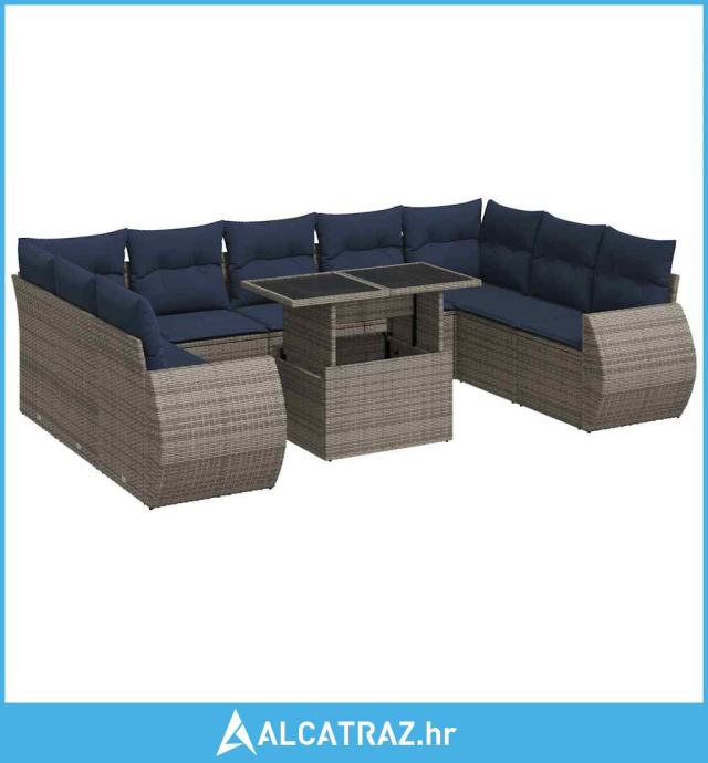 10-dijelni set vrtnih sofa poliratan i bagrem s jastucima sivi - NOVO