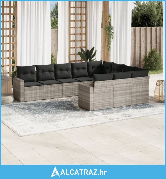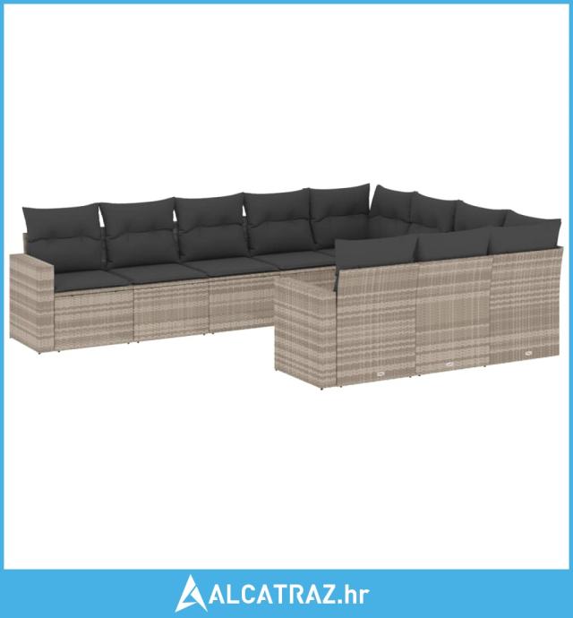 10-dijelni set vrtnih sofa poliratan s jastucima svijetlosivi - NOVO