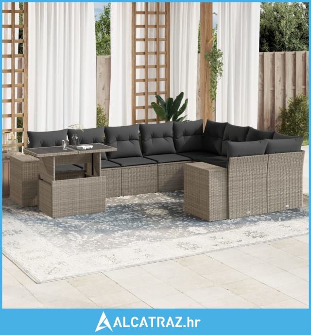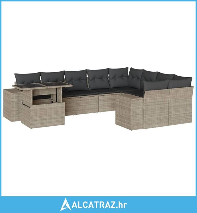 10-dijelni set vrtnih sofa poliratan s jastucima svijetlosivi - NOVO