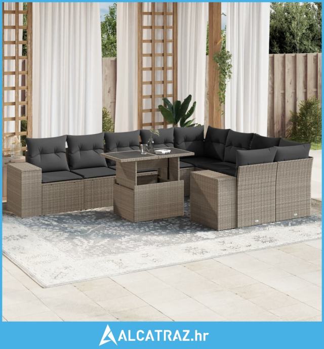 10-dijelni set vrtnih sofa poliratan s jastucima svijetlosivi - NOVO