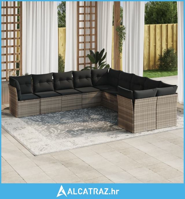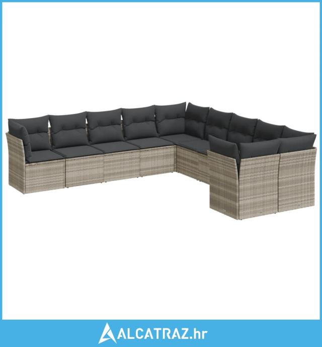 10-dijelni set vrtnih sofa poliratan s jastucima svijetlosivi - NOVO