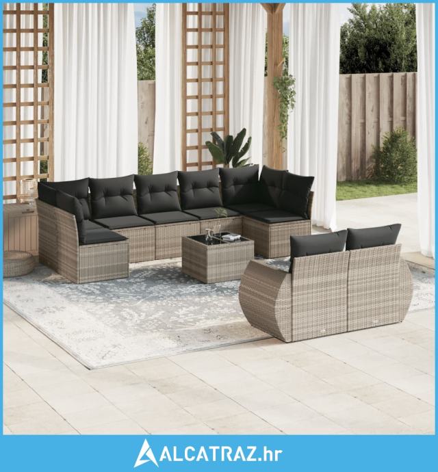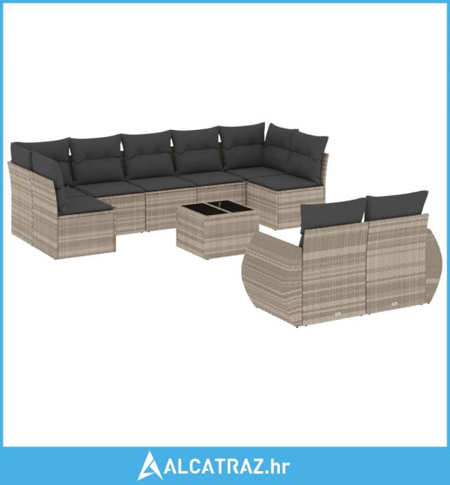 10-dijelni set vrtnih sofa poliratan s jastucima svijetlosivi - NOVO