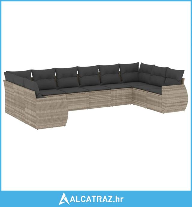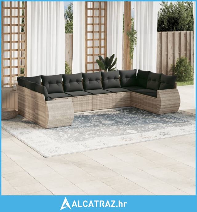 10-dijelni set vrtnih sofa poliratan s jastucima svijetlosivi - NOVO