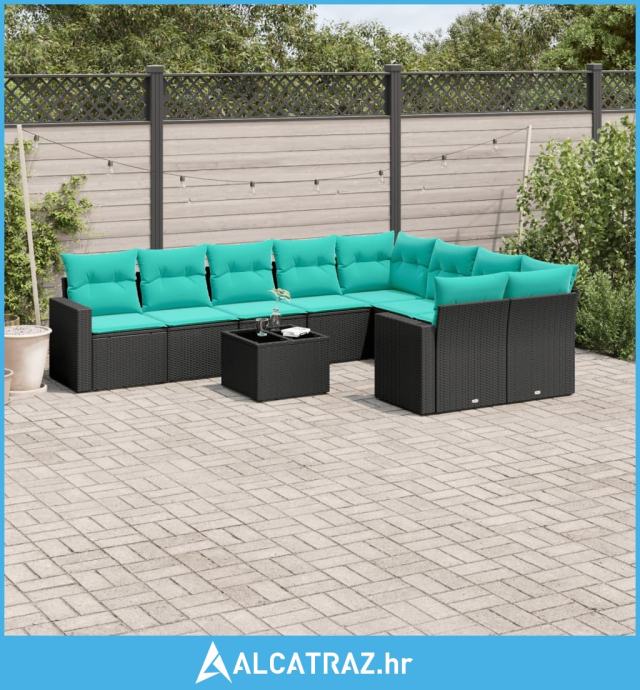10-dijelni set vrtnih sofa od poliratana s jastucima crni - NOVO