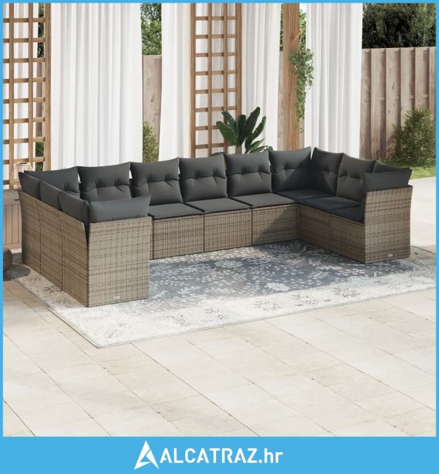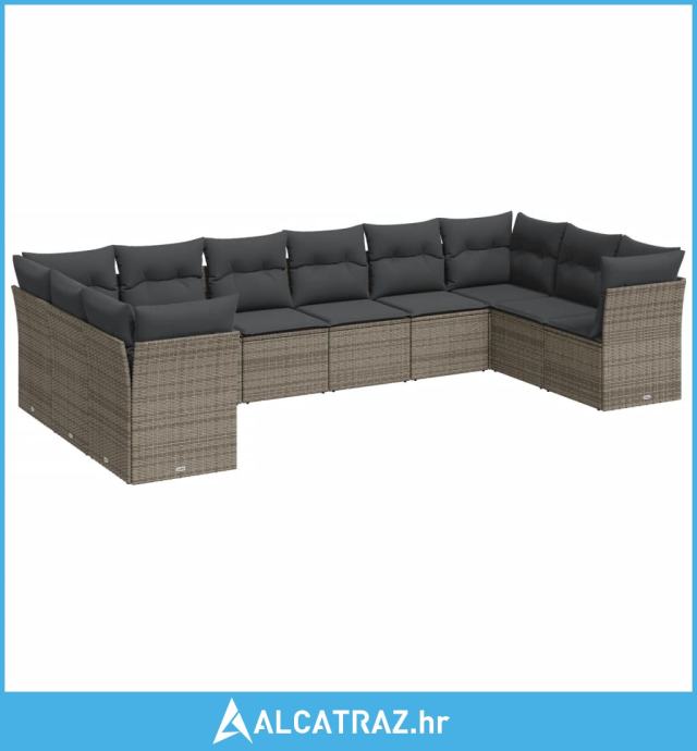 10-dijelni set vrtnih sofa od poliratana s jastucima sivi - NOVO