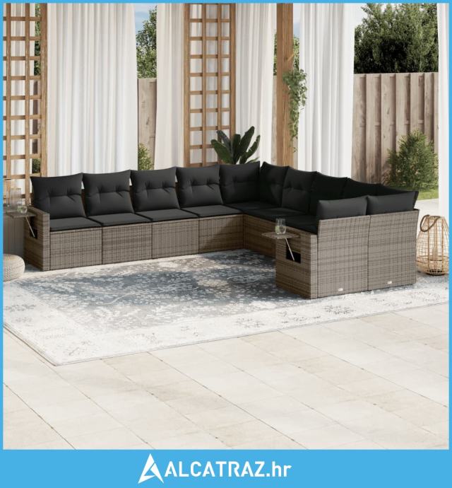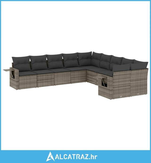 10-dijelni set vrtnih sofa od poliratana s jastucima sivi - NOVO