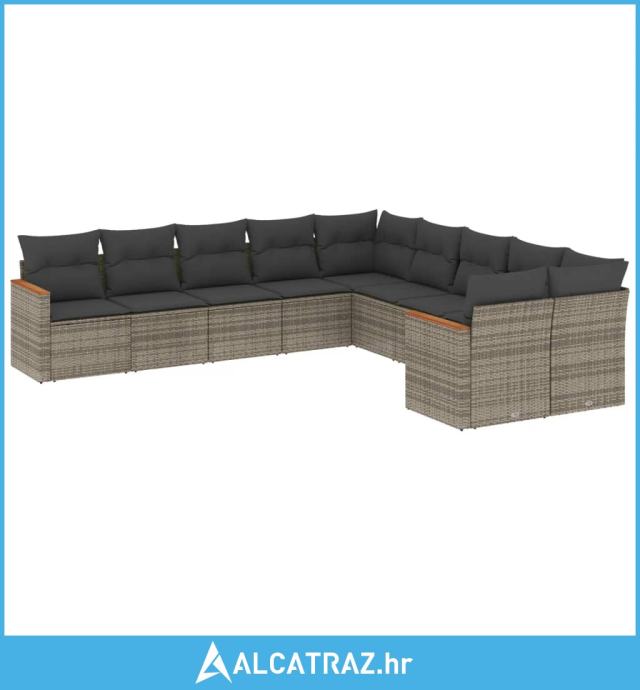 10-dijelni set vrtnih sofa od poliratana s jastucima sivi - NOVO