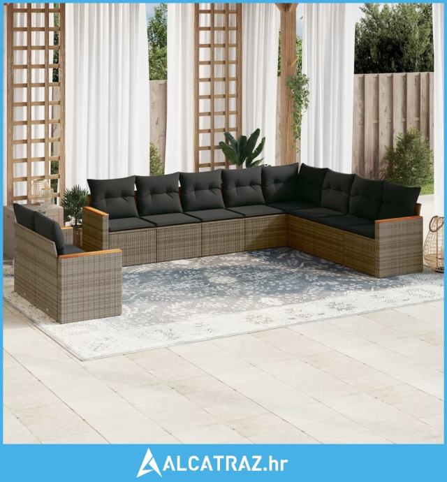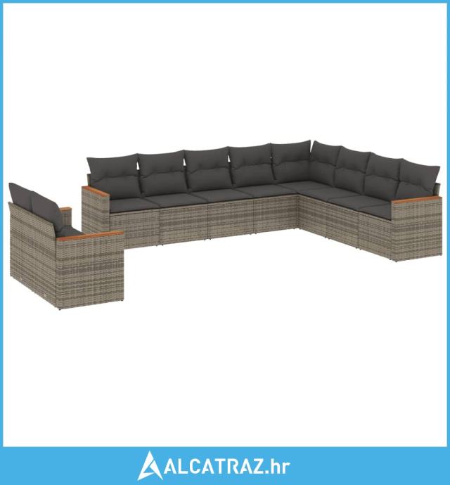 10-dijelni set vrtnih sofa od poliratana s jastucima sivi - NOVO