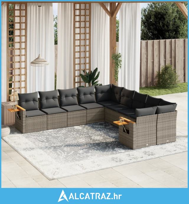 10-dijelni set vrtnih sofa od poliratana s jastucima sivi - NOVO