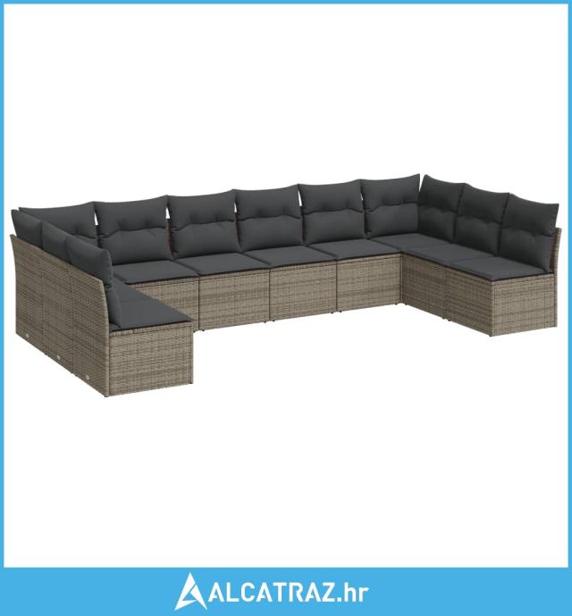 10-dijelni set vrtnih sofa od poliratana s jastucima sivi - NOVO