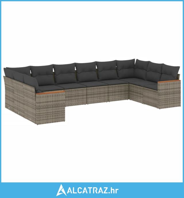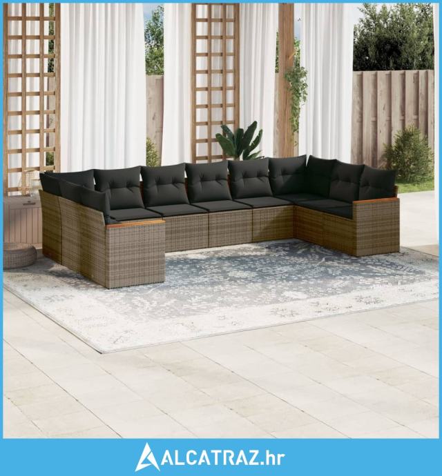 10-dijelni set vrtnih sofa od poliratana s jastucima sivi - NOVO