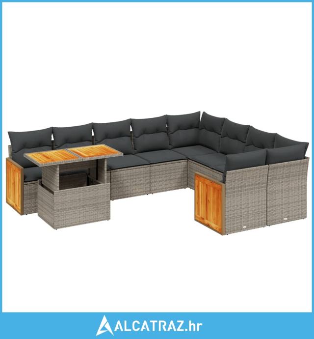 10-dijelni set vrtnih sofa od poliratana s jastucima sivi - NOVO