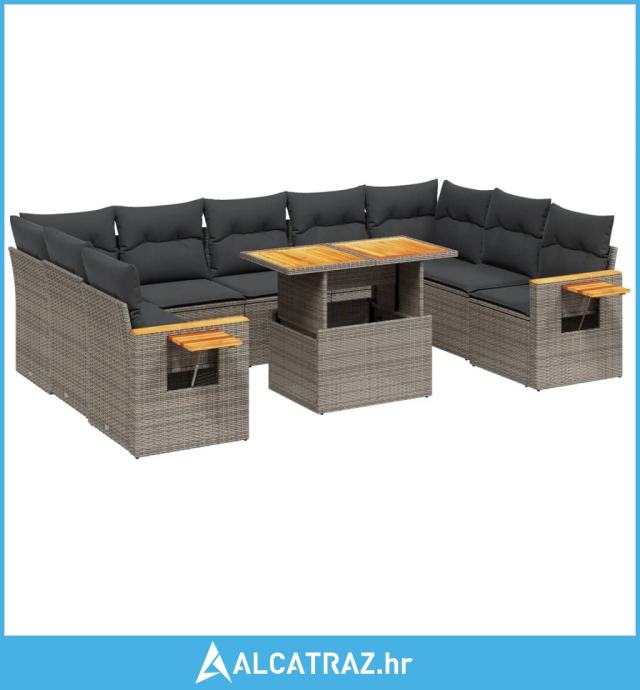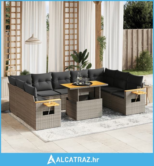 10-dijelni set vrtnih sofa od poliratana s jastucima sivi - NOVO