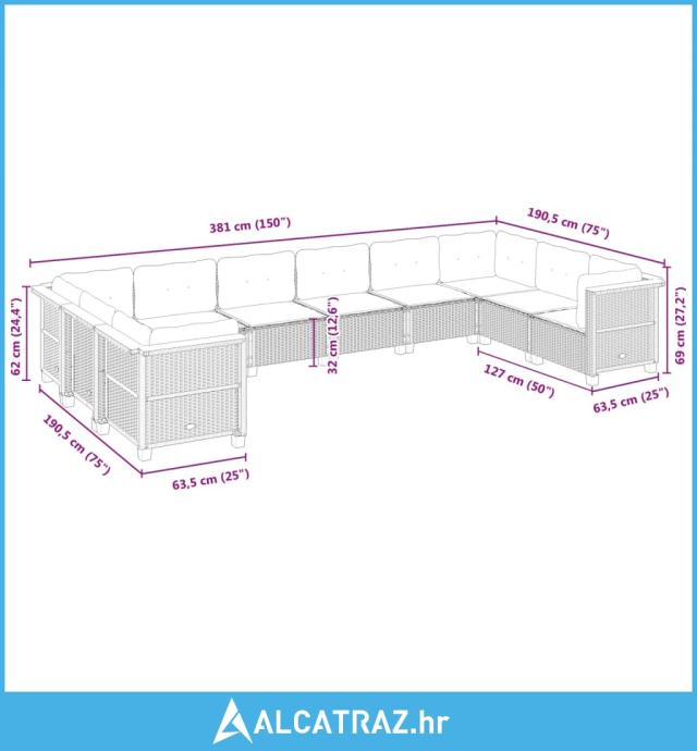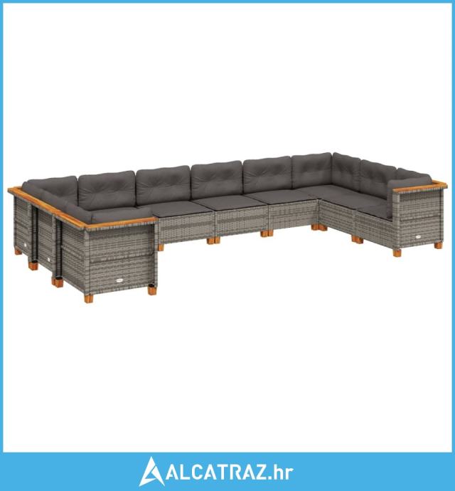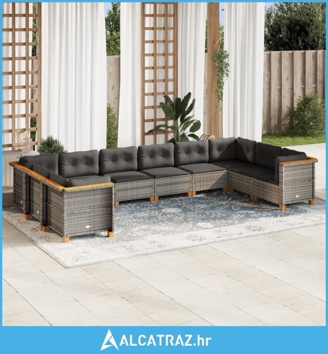 10-dijelni set vrtnih sofa od poliratana s jastucima sivi - NOVO