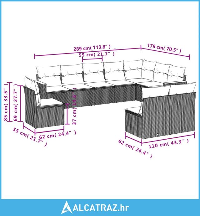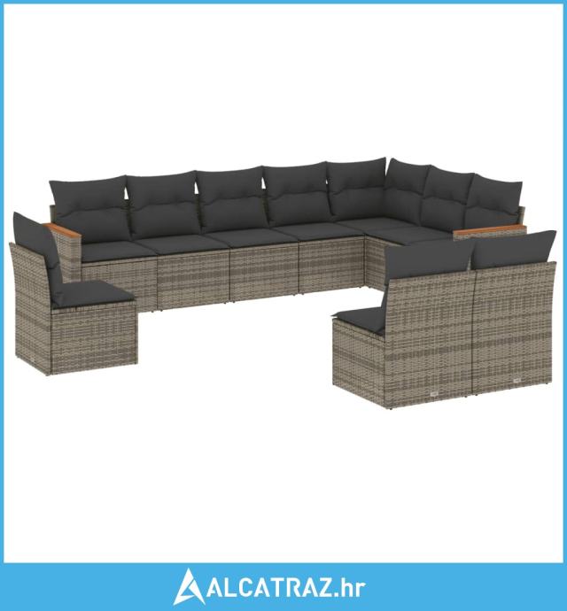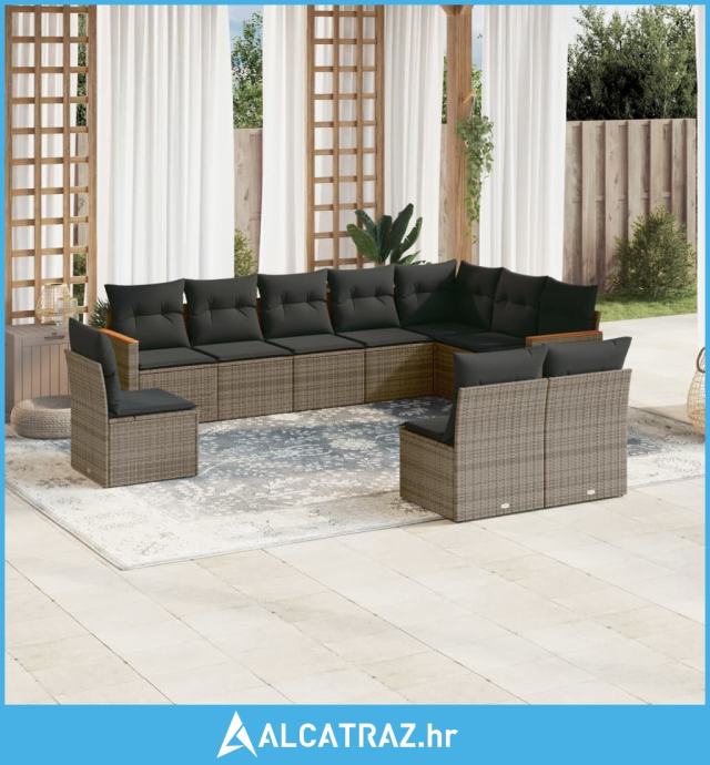 10-dijelni set vrtnih sofa od poliratana s jastucima sivi - NOVO