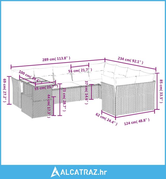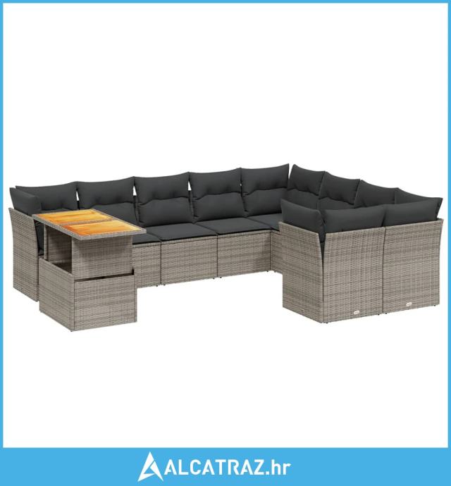 10-dijelni set vrtnih sofa od poliratana s jastucima sivi - NOVO