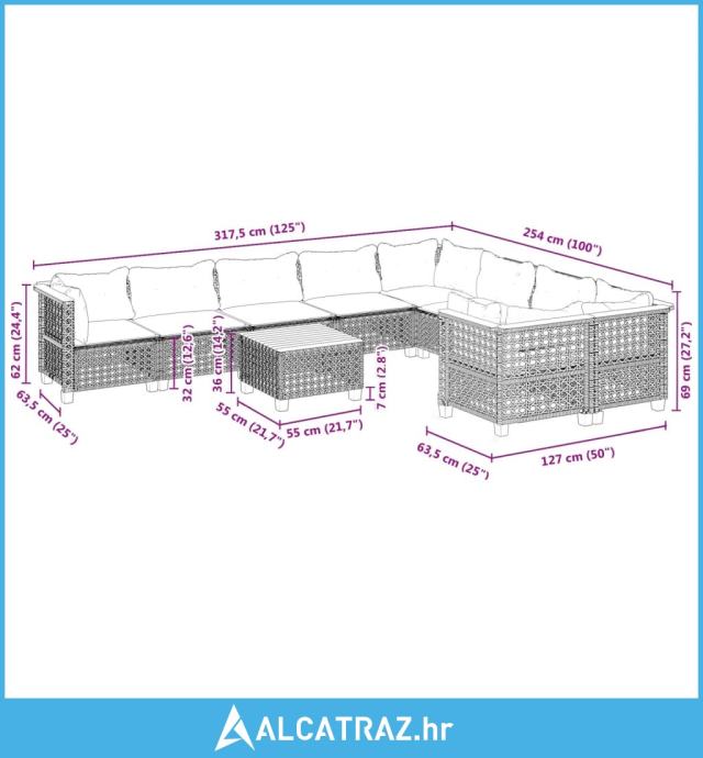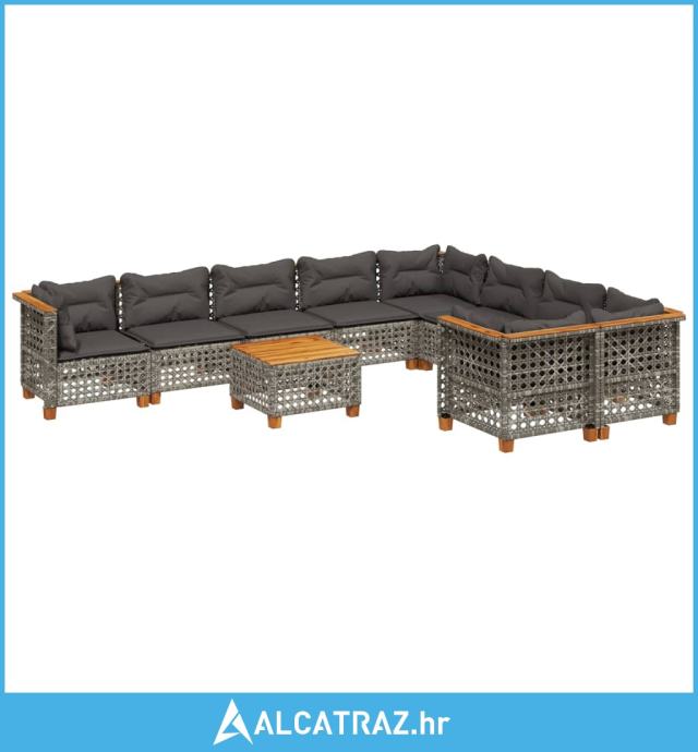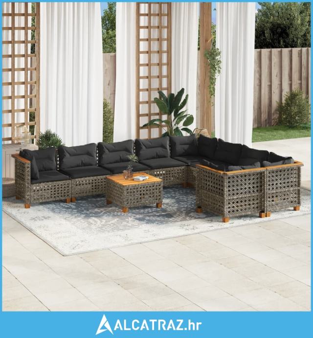 10-dijelni set vrtnih sofa od poliratana s jastucima sivi - NOVO