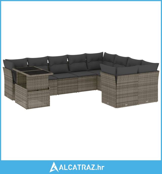 10-dijelni set vrtnih sofa od poliratana s jastucima sivi - NOVO