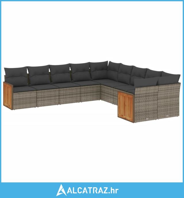 10-dijelni set vrtnih sofa od poliratana s jastucima sivi - NOVO