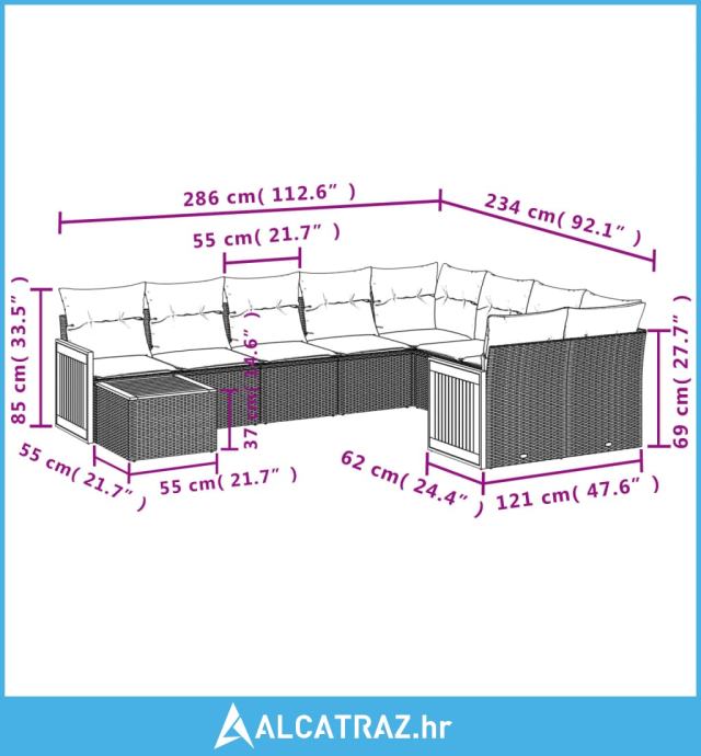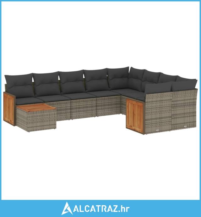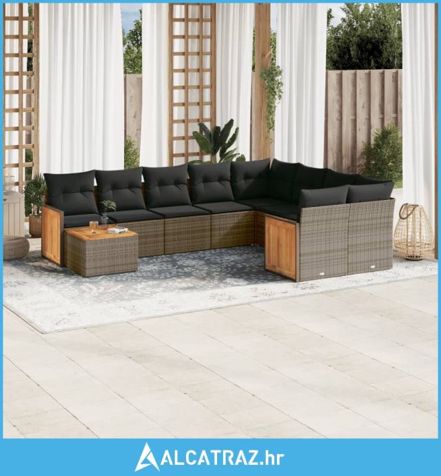 10-dijelni set vrtnih sofa od poliratana s jastucima sivi - NOVO