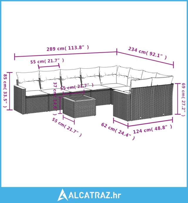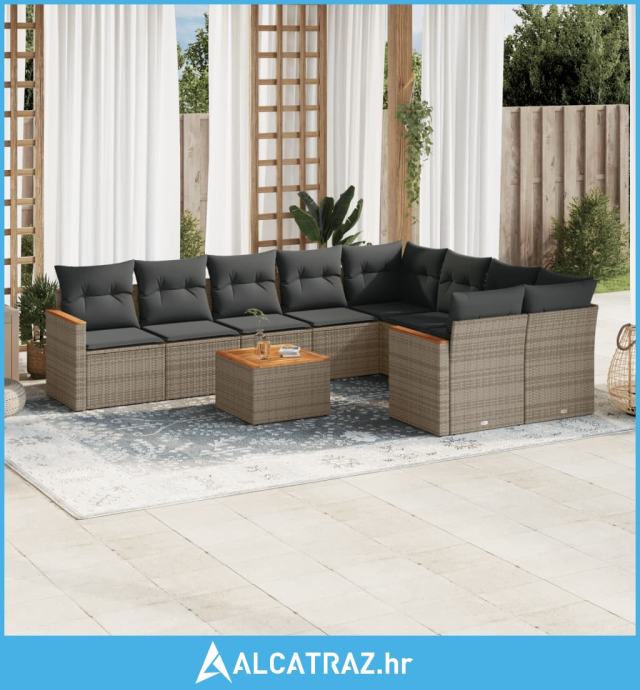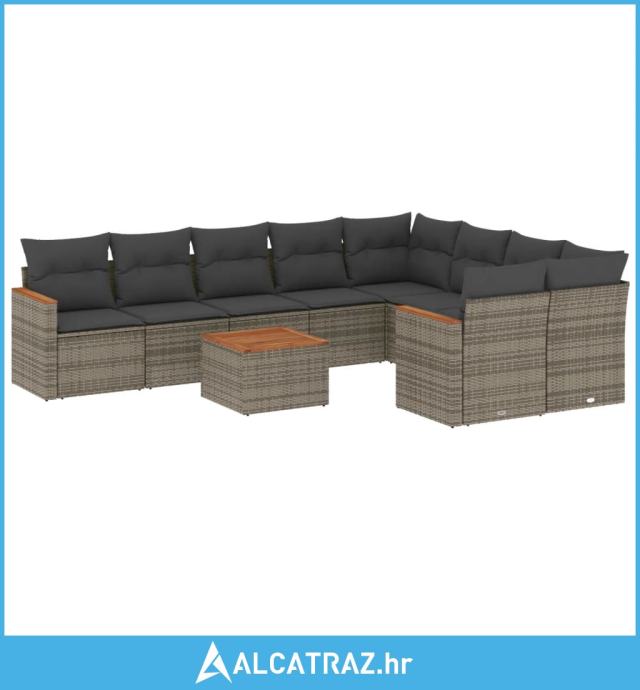 10-dijelni set vrtnih sofa od poliratana s jastucima sivi - NOVO