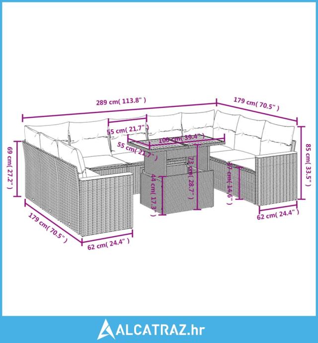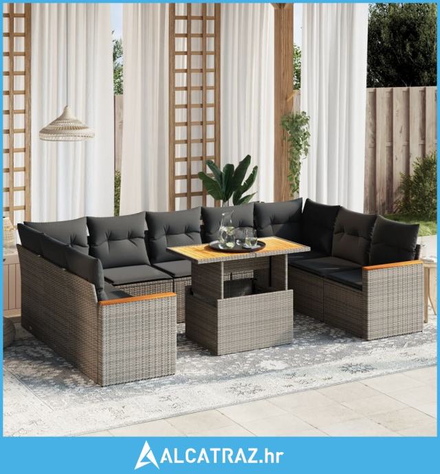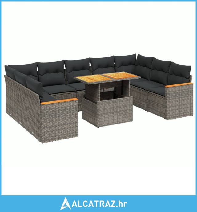 10-dijelni set vrtnih sofa od poliratana s jastucima sivi - NOVO