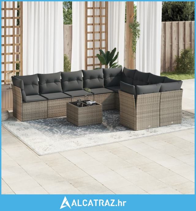10-dijelni set vrtnih sofa od poliratana s jastucima sivi - NOVO