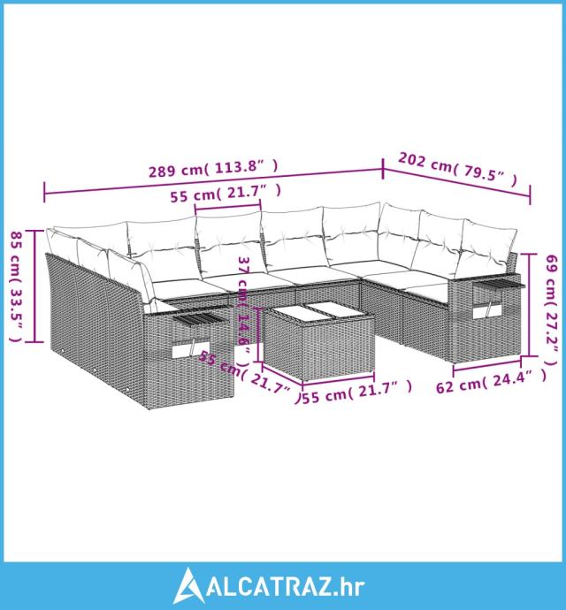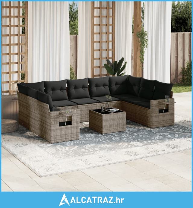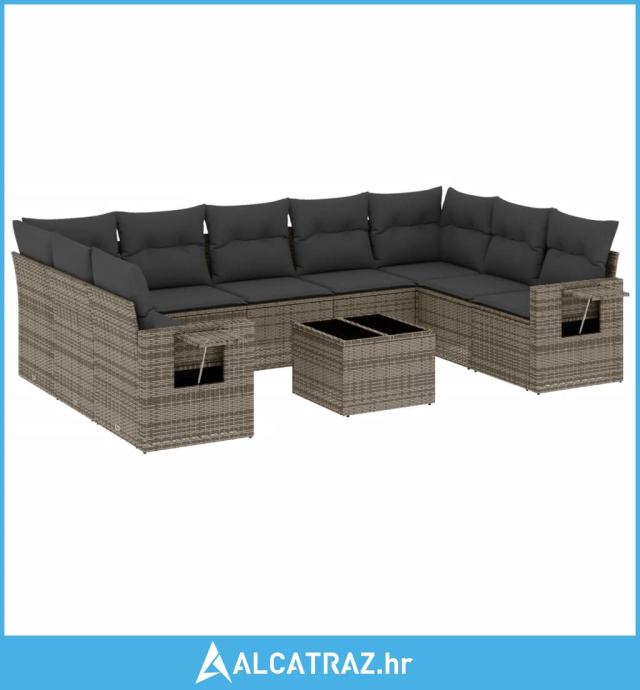 10-dijelni set vrtnih sofa od poliratana s jastucima sivi - NOVO