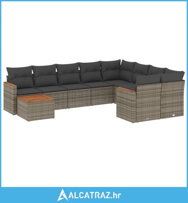10-dijelni set vrtnih sofa od poliratana s jastucima sivi - NOVO