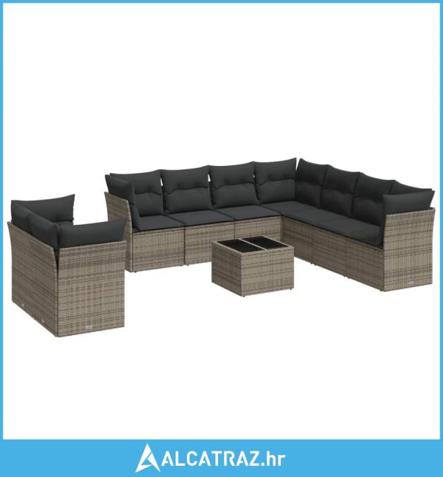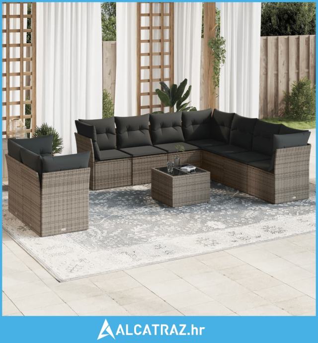 10-dijelni set vrtnih sofa od poliratana s jastucima sivi - NOVO