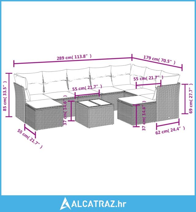 10-dijelni set vrtnih sofa od poliratana s jastucima sivi - NOVO