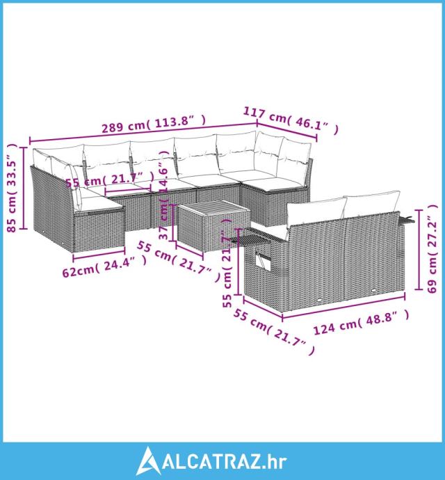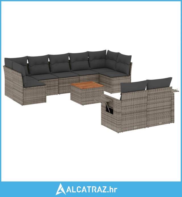 10-dijelni set vrtnih sofa od poliratana s jastucima sivi - NOVO