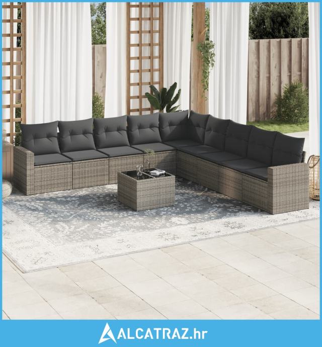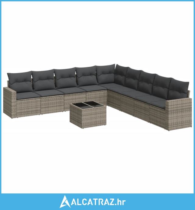 10-dijelni set vrtnih sofa od poliratana s jastucima sivi - NOVO