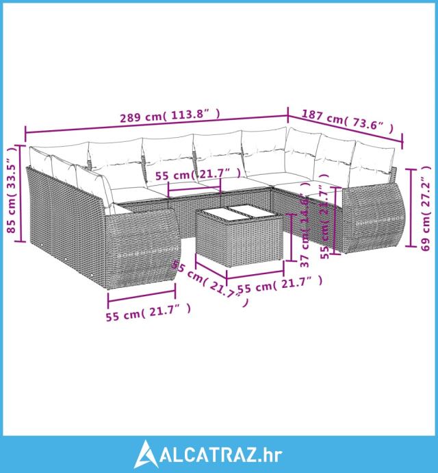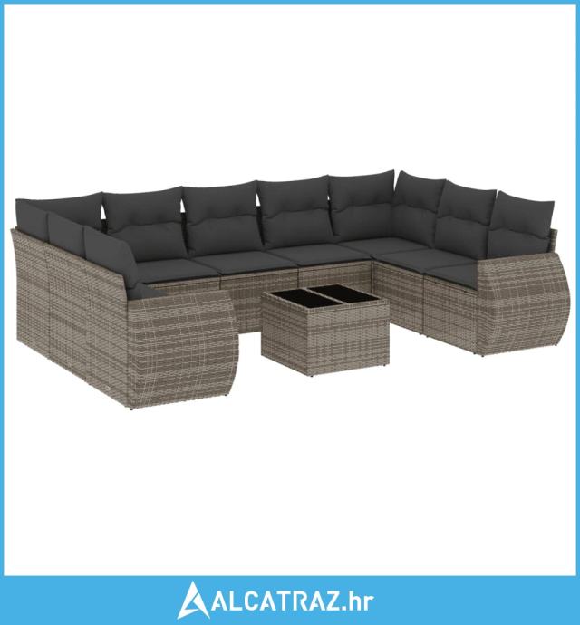 10-dijelni set vrtnih sofa od poliratana s jastucima sivi - NOVO