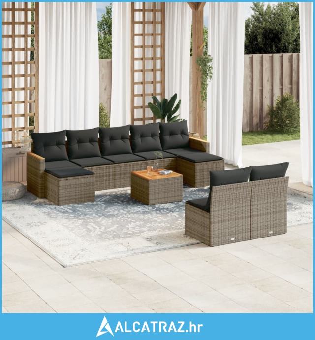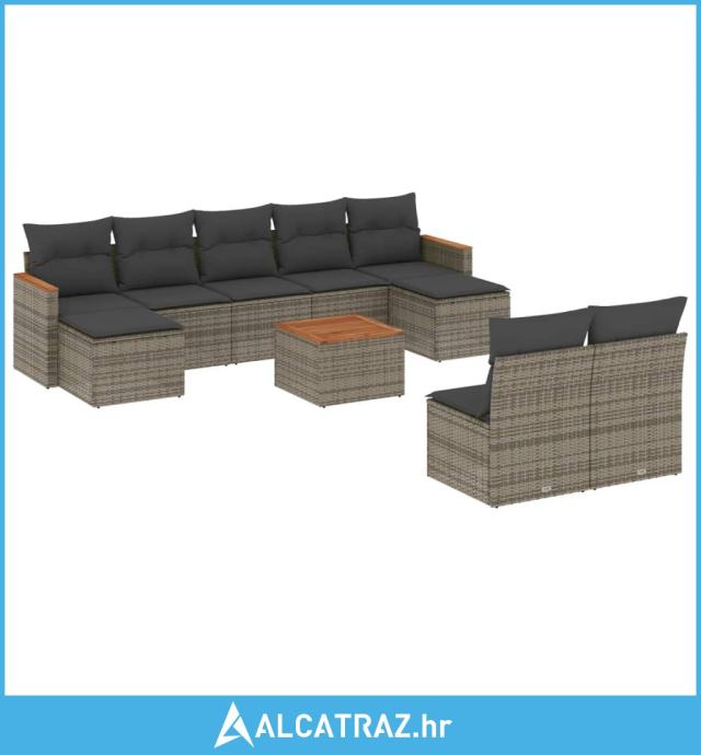 10-dijelni set vrtnih sofa od poliratana s jastucima sivi - NOVO