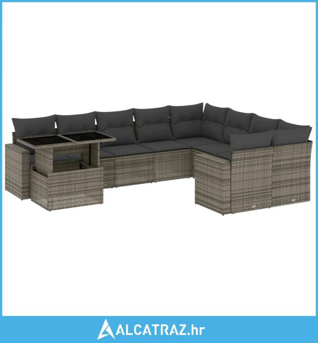 10-dijelni set vrtnih sofa od poliratana s jastucima sivi - NOVO